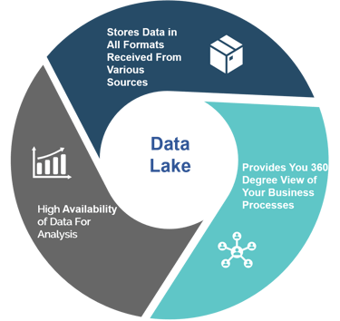 A data lake eliminates the need for predefined schemas, allowing organizations to store and process raw data without knowing the type of analysis required in the future. This approach provides: