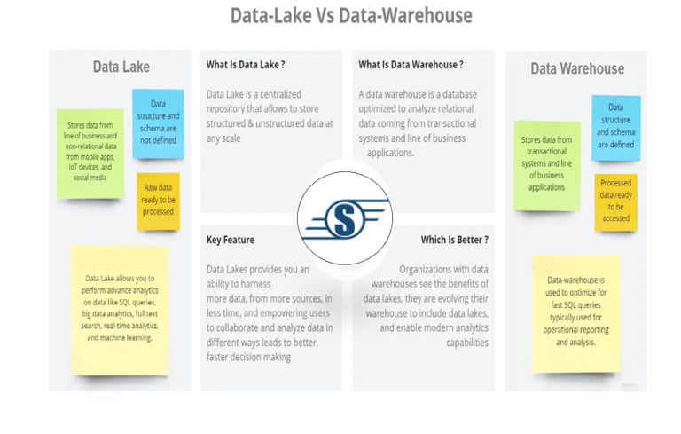 Traditionally, a data warehouse is an optimized database designed for analyzing relational data from business applications. Its data structure and schema are predefined, ensuring the system is optimized for faster queries and streamlined reporting. This structured approach makes data warehouses ideal for generating insights from well-organized, consistent datasets.